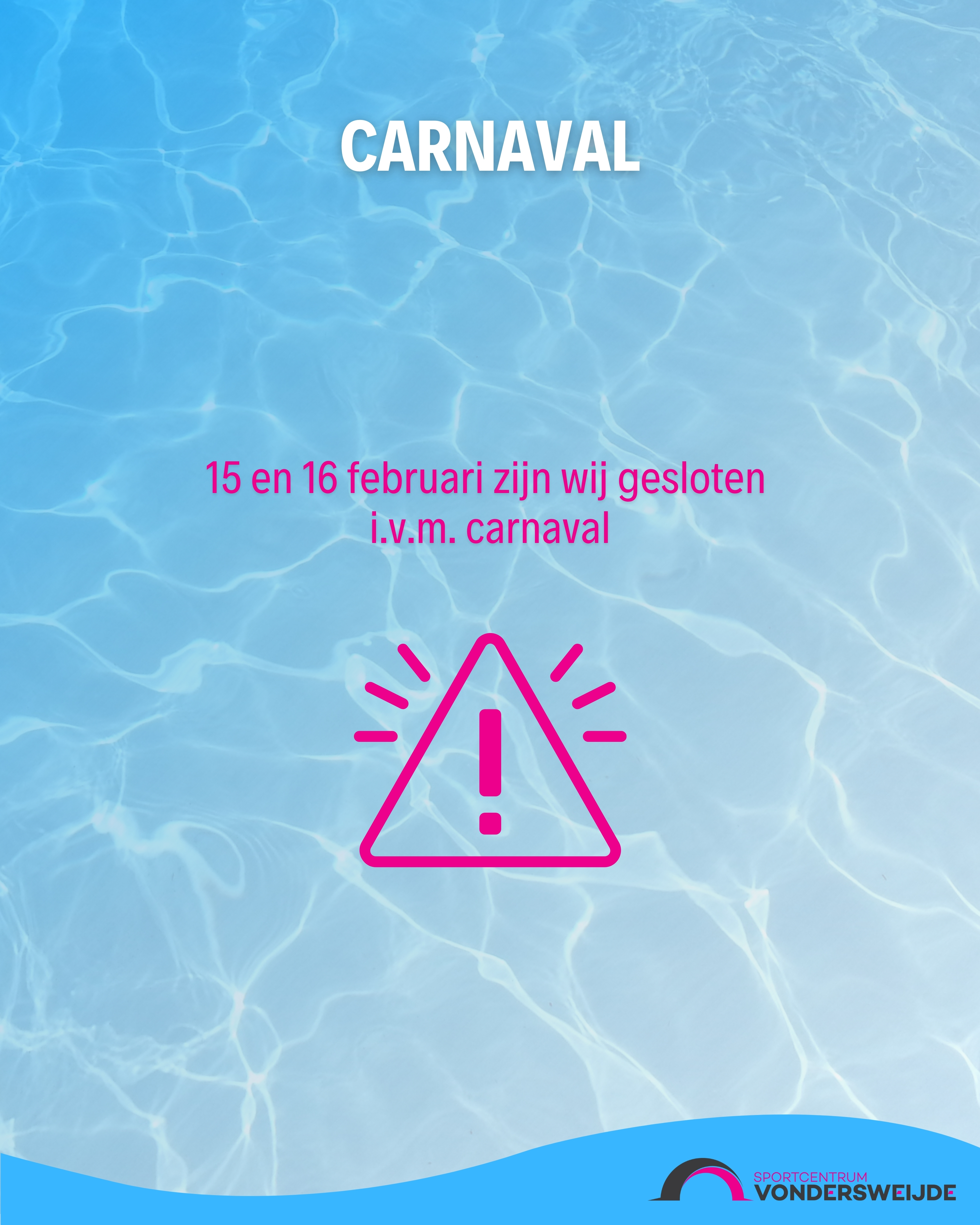 - Tevens zijn wij gesloten in verband met carnaval op zondag 15 februari en maandag 16 februari.